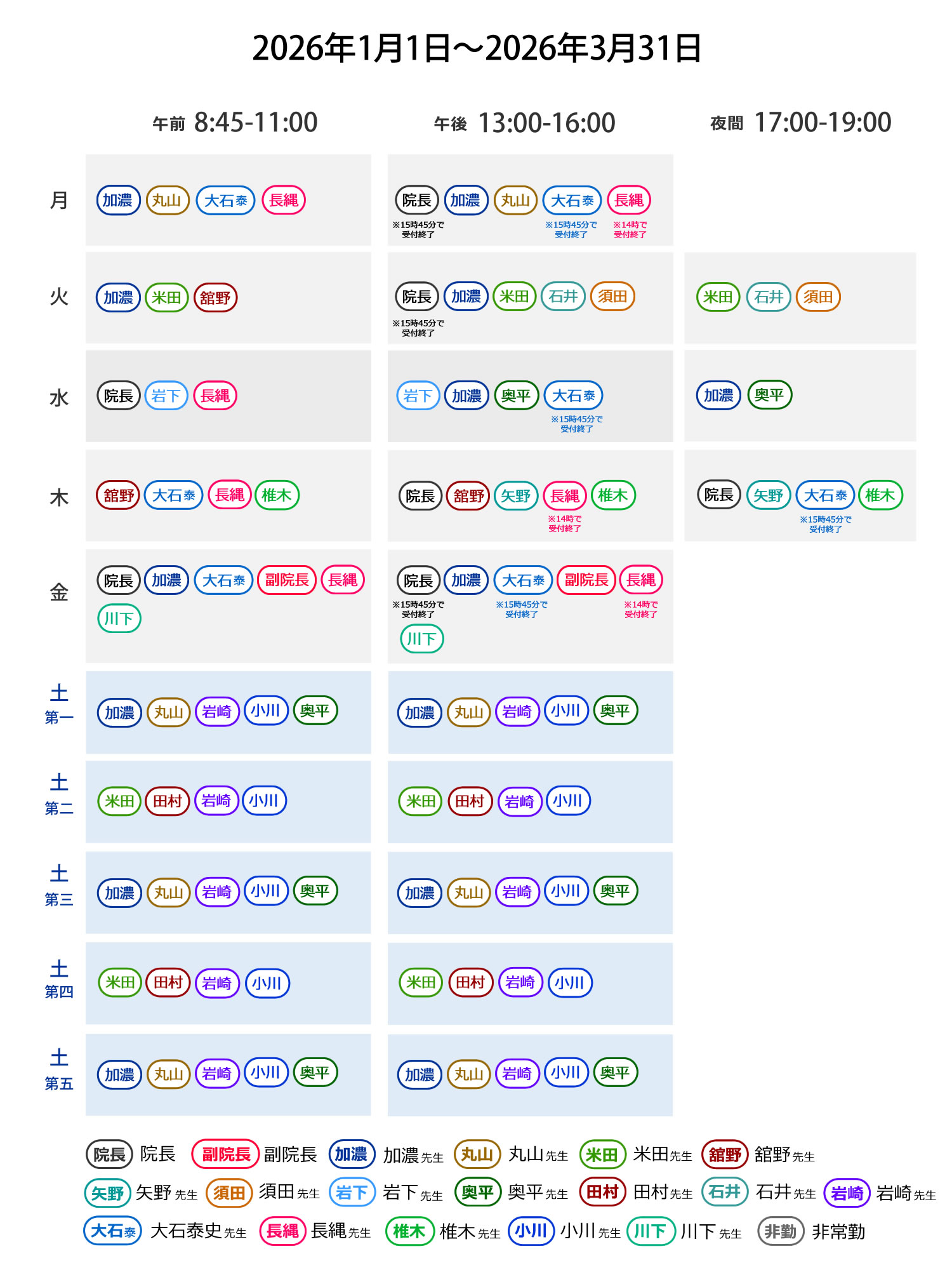 ※1月13日(火)の須田先生の午後の受付が急遽15時までに変更になりました。