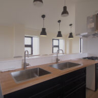シェアハウスタイプでは、お風呂とは別にシャワーブース、洗濯機・乾燥機ブースがあります。ワンルームタイプでも洗濯機・乾燥機ブースや各個室のミニキッチンとは別に、広々とした共有キッチンを利用できます。